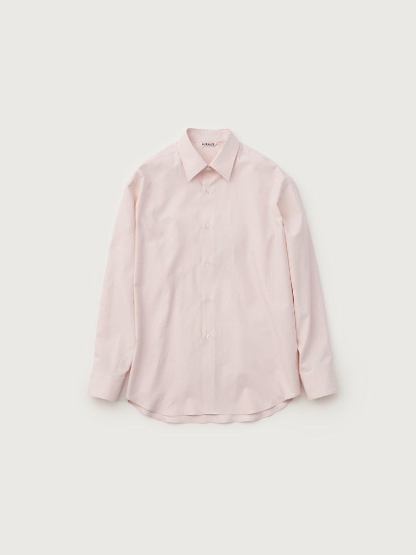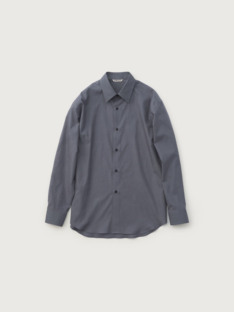 A cotton twill shirt made from AURALEE’s signature Finx cotton, presented in an exclusive color. Repeated washing creates a soft hand, subtle sheen, and graceful drape.