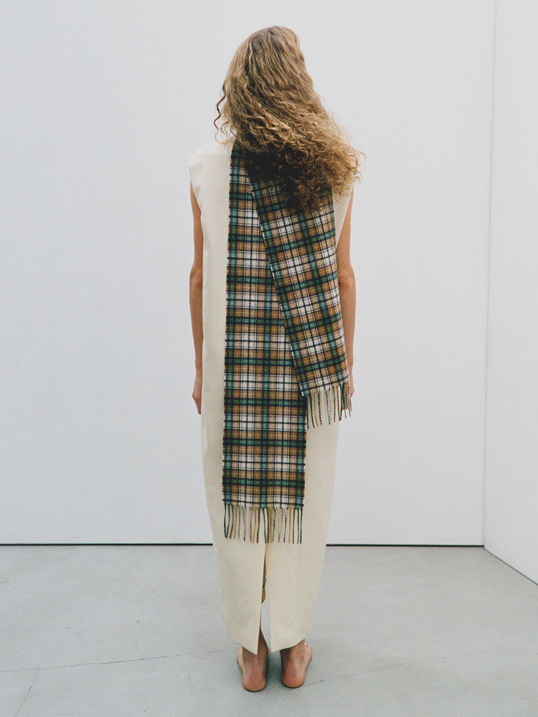 CASHMERE CHECK STOLE in Brown Yellow Check