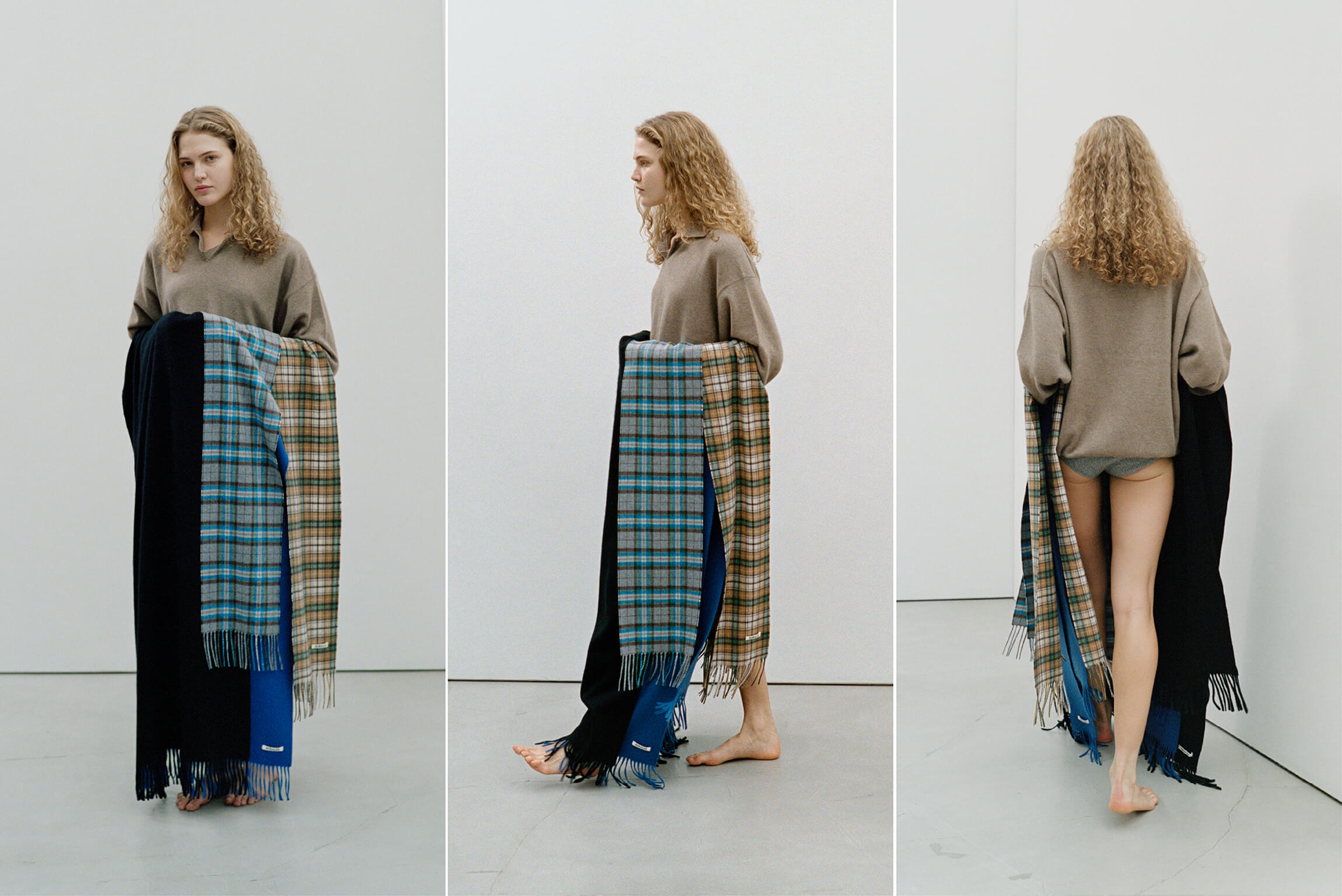 CASHMERE CHECK STOLE in Gray Blue Check
