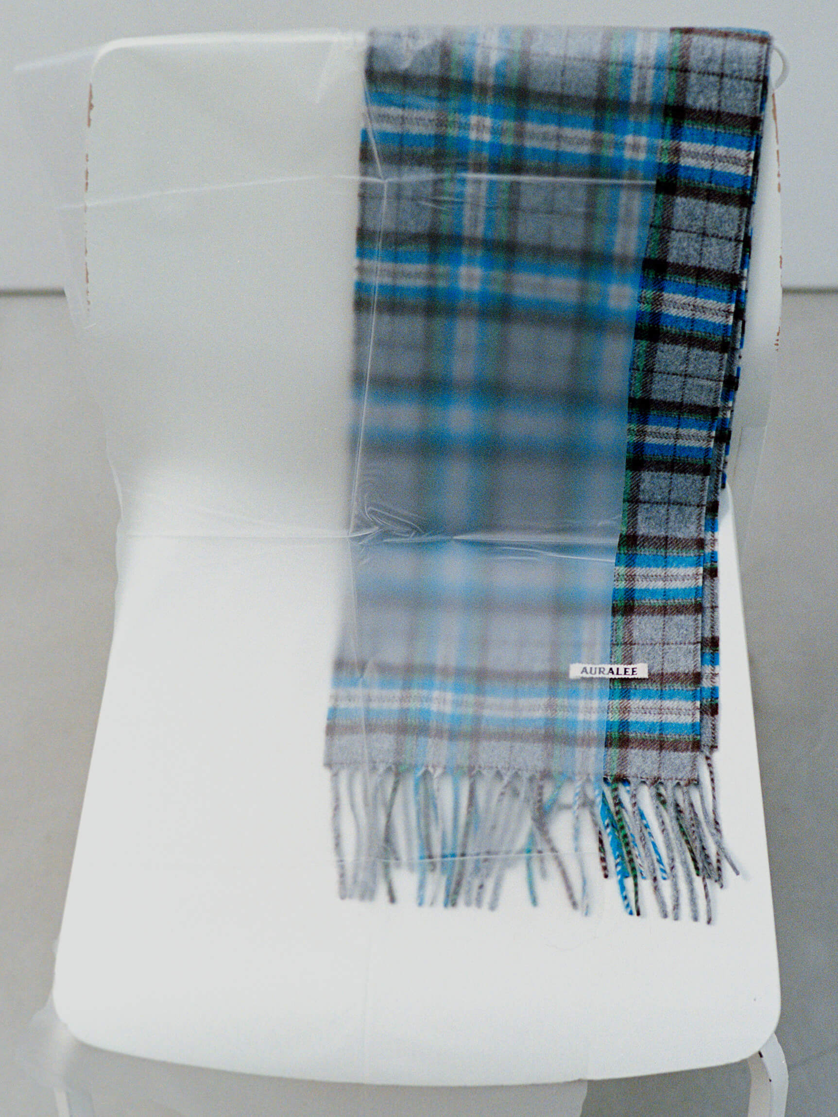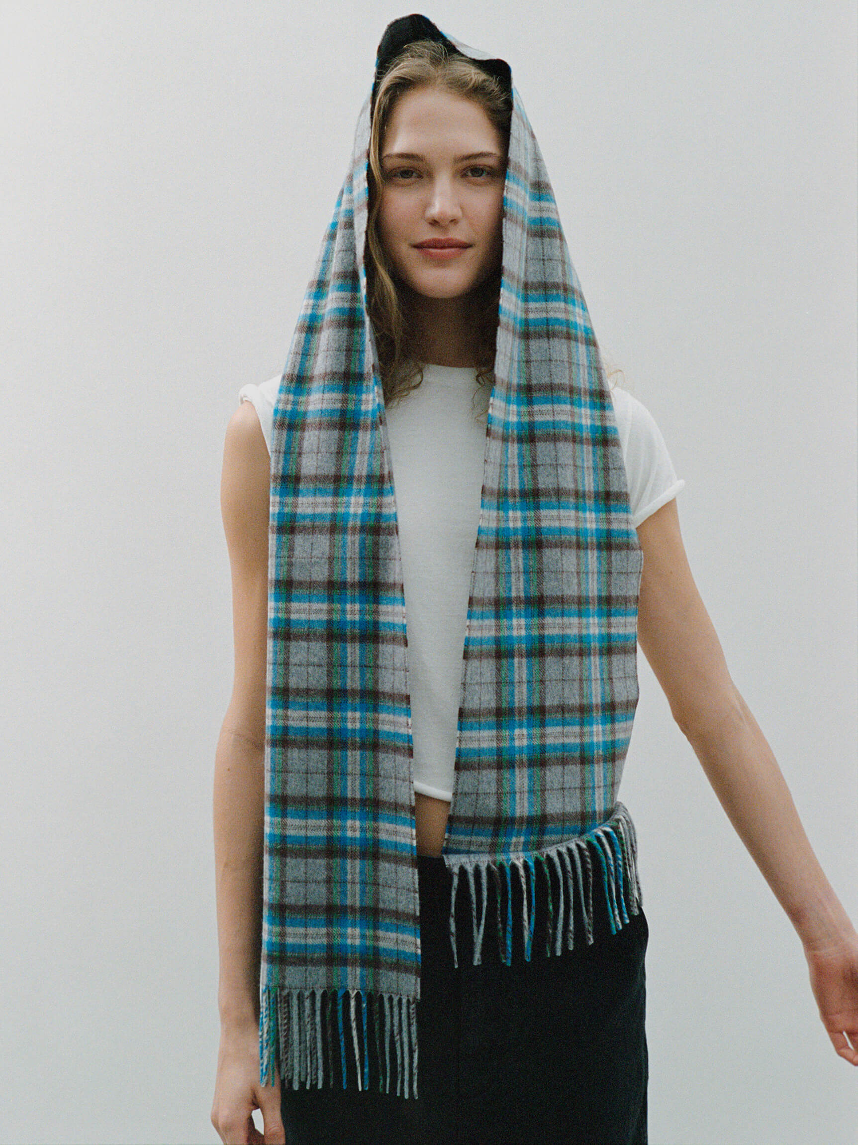 CASHMERE CHECK STOLE in Gray Blue Check