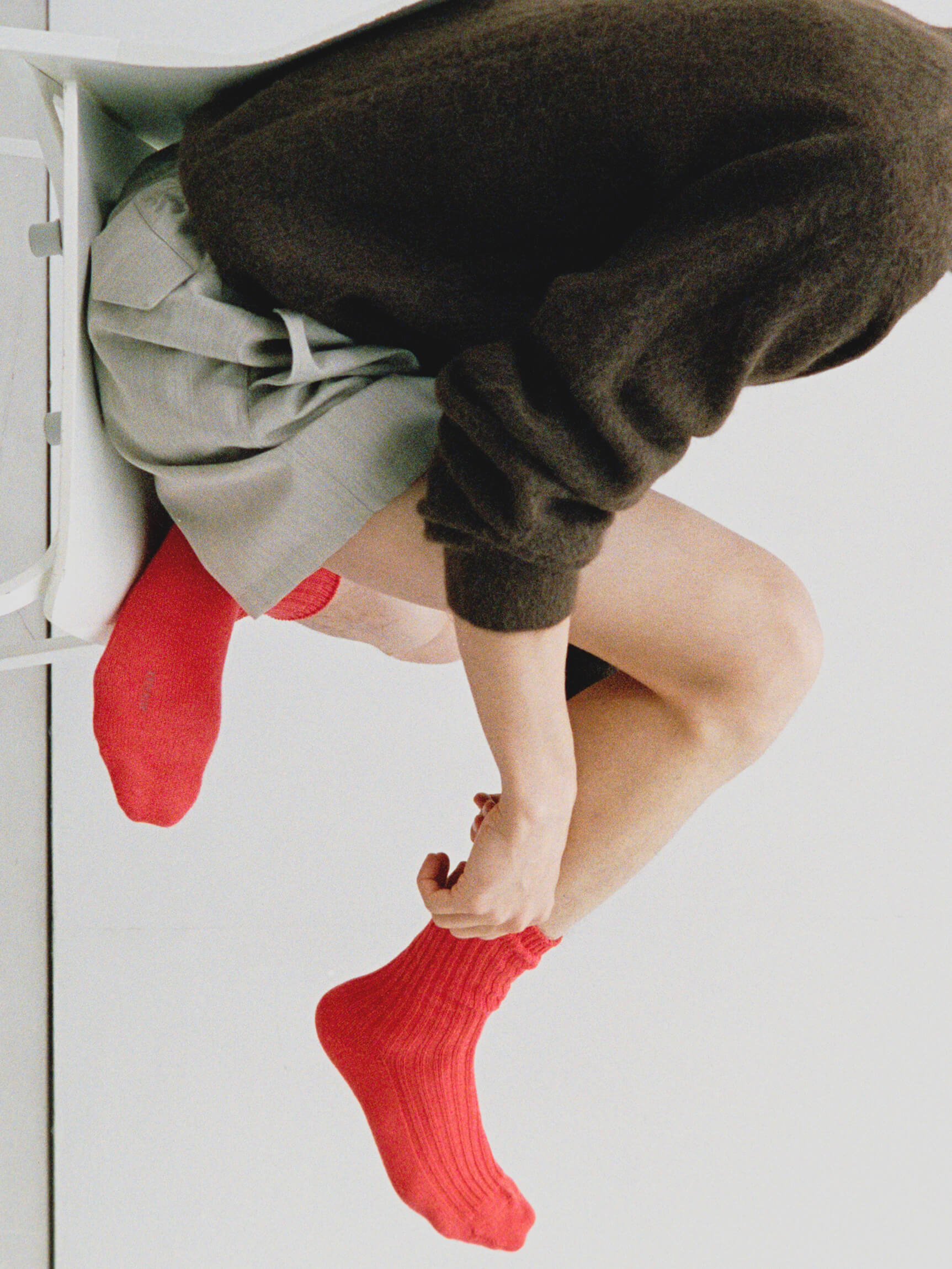 COTTON WOOL LOW GAUGE SOCKS in Red Orange